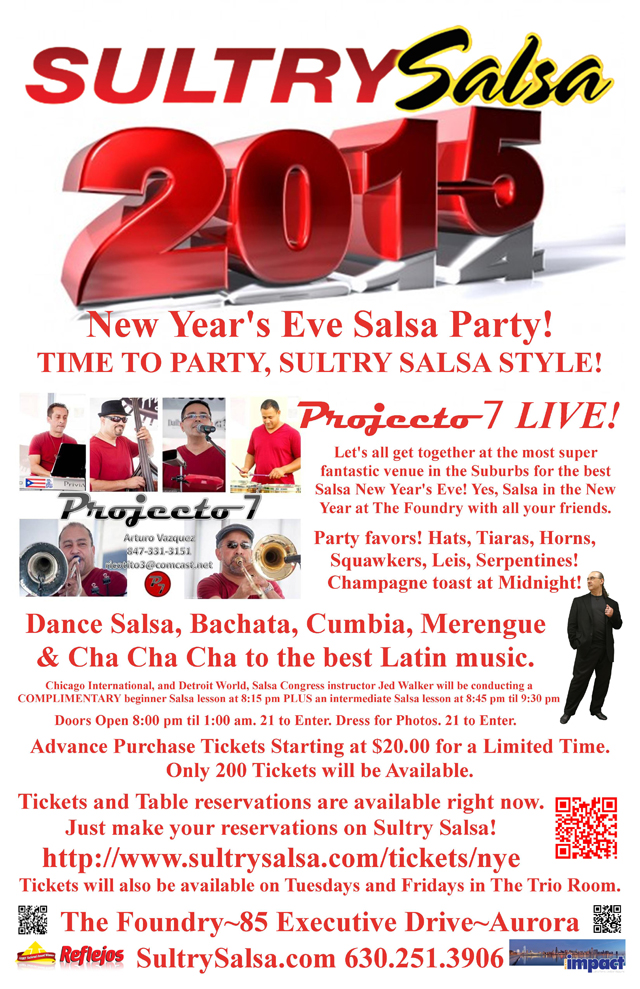 Your host, El Barón, Jed Walker, invites you to Celebrate the New Year with Sultry Salsa Featuring Projecto 7 LIVE! at The Foundry and another fabulous Sultry Salsa Entertainment event on Wednesday, December 31, 2014!